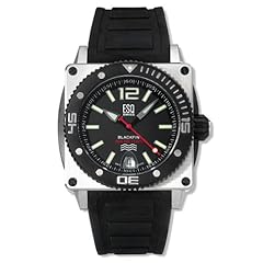 The men's Blackfin watch from esq is a bold and unique dive timepiece that is certain to turn heads. The sturdy square stainless-steel case surrounds a black bidirectional stainless-steel bezel and black dial. A calendar window sits at the six o'clock. A wide rubber band with buckle clasp, and luminous hands and indexes round out the watch's design features. This Swiss-quartz timepiece is water resistant to 1,000 feet. Form and function make this watch perfect for those who live life to the fullest.