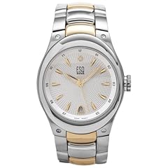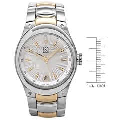 The esq Men's Centurion Watch #07300899 is handsome, sophisticated, perfect for the guy who has such fashion sense that he makes heads turn whenever he enters a room. The two-tone, stainless steel bracelet, which features an invisible, double-locking clasp, is complemented by a silver tone bezel with an oval frame. The white dial features a silver webbing pattern, with sleek, gold indexes and a calendar at the six o'clock position. The dial also has gold, luminous hands and a gold sweeping seconds hand. This watch is water resistant to 99 feet.Images ScreenShot
