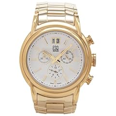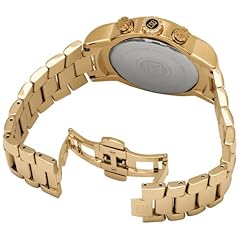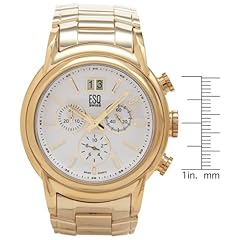 Time for some style. Chronograph watch features 18k gold-plated stainless steel bracelet and case. Patterned dial with three subdials and date window. Swiss quartz chronograph movement. Water resistant to 30 meters.Images ScreenShot